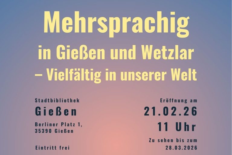 22. Mai 2026 | Am 22. Mai 2026 bringen wir unsere Ausstellung "Mehrsprachigkeit in Gießen & Wetzlar - Vielfältig in unserer Welt" in die Stadtbibliothek nach Wetzlar.